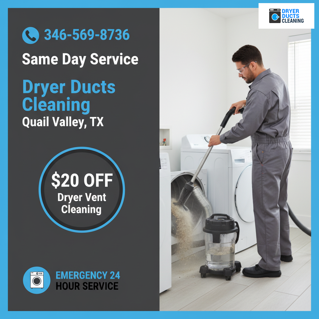 By scheduling routine support with Quail Valley Dryer Duct Cleaning TX you not only reduce fire risk but also improve dryer functionality and extend the life of your unit. Don’t wait for a dangerous situation to arise contact Quail Valley Dryer Duct Cleaning TX today for dryer ducts cleaning and comfort.